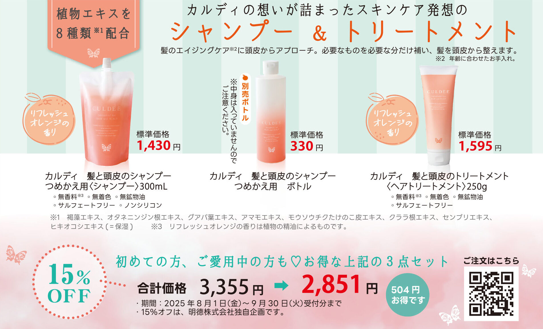 8月1日~9月30日 カルディ シャンプー&トリートメント お得な3点セット