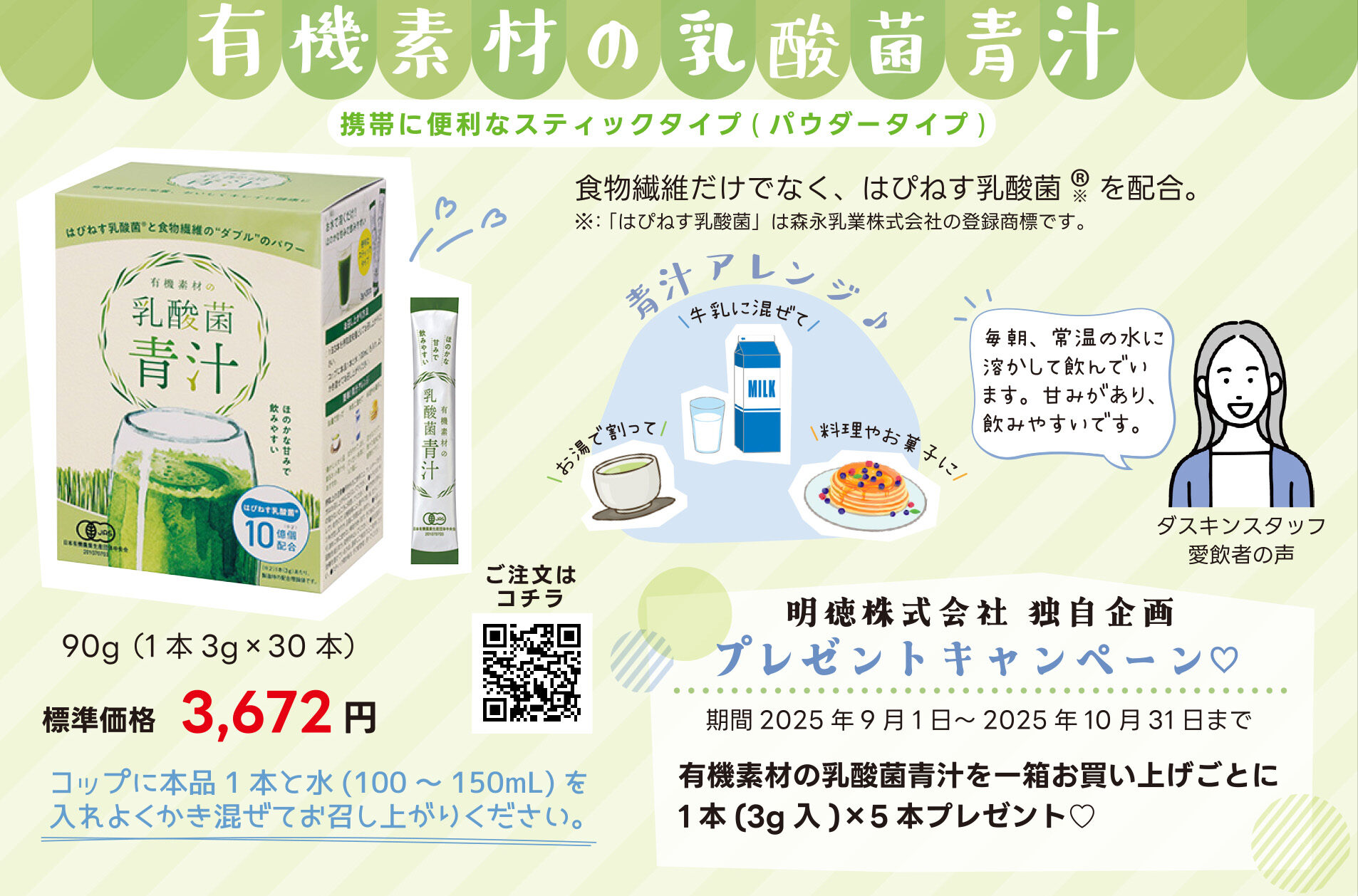 9月1日~10月31日 有機素材の乳酸菌青汁 プレゼントキャンペーン