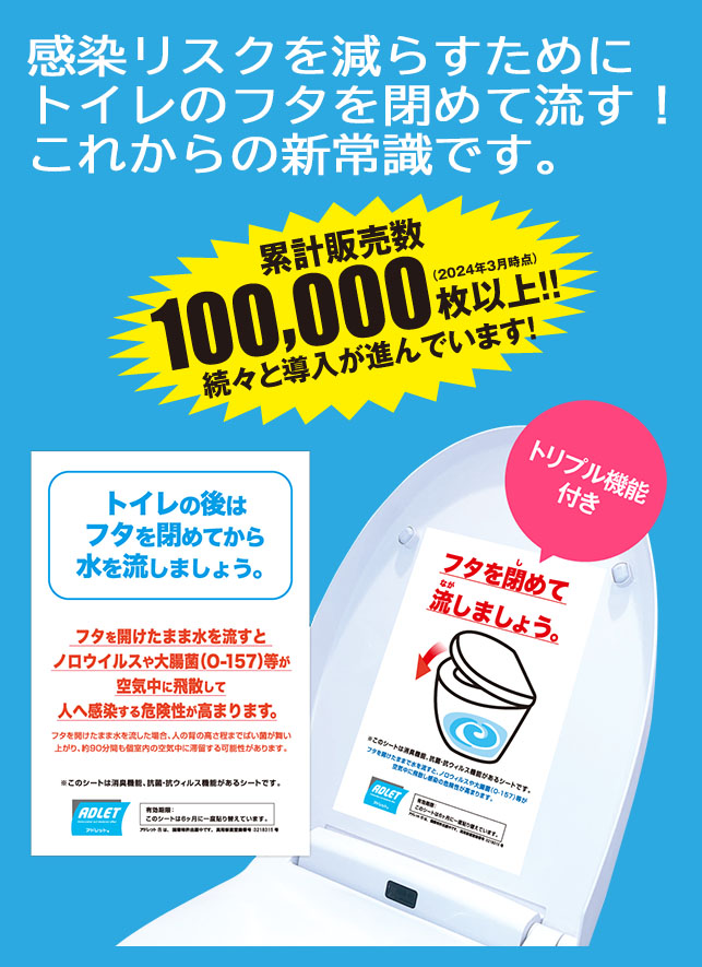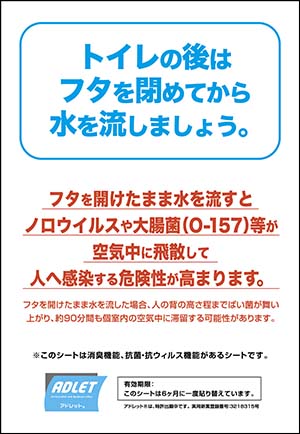 アメリカ・コロラド大学ボルダー校所属ジョン・クリマルディ教授ら研究チームによる研究では、トイレの水を流した時に毎秒2mの速度で粒子が放出され、8秒以内に便器の上1.5mまで到達、粒子の多くは天井にぶつかるまで舞い上がり部屋中に広がって行ったということです。粒子の中には大腸菌やノロウイルスなどの菌やウイルスが含まれている可能性もあります。