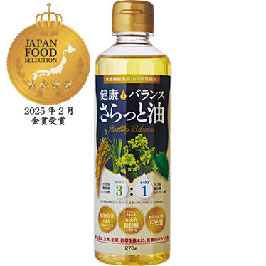 菜種・米・えごまを丁寧に搾油・精製し、オメガ6:オメガ3=3:1のダスキンオリジナルの配合でブレンドした油です。