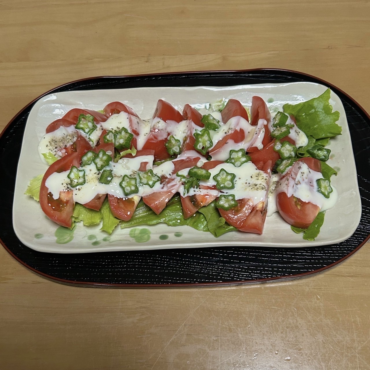 材料:レタス、トマト、オクラ、ブラックペッパー、乾燥バジル、さらっと油