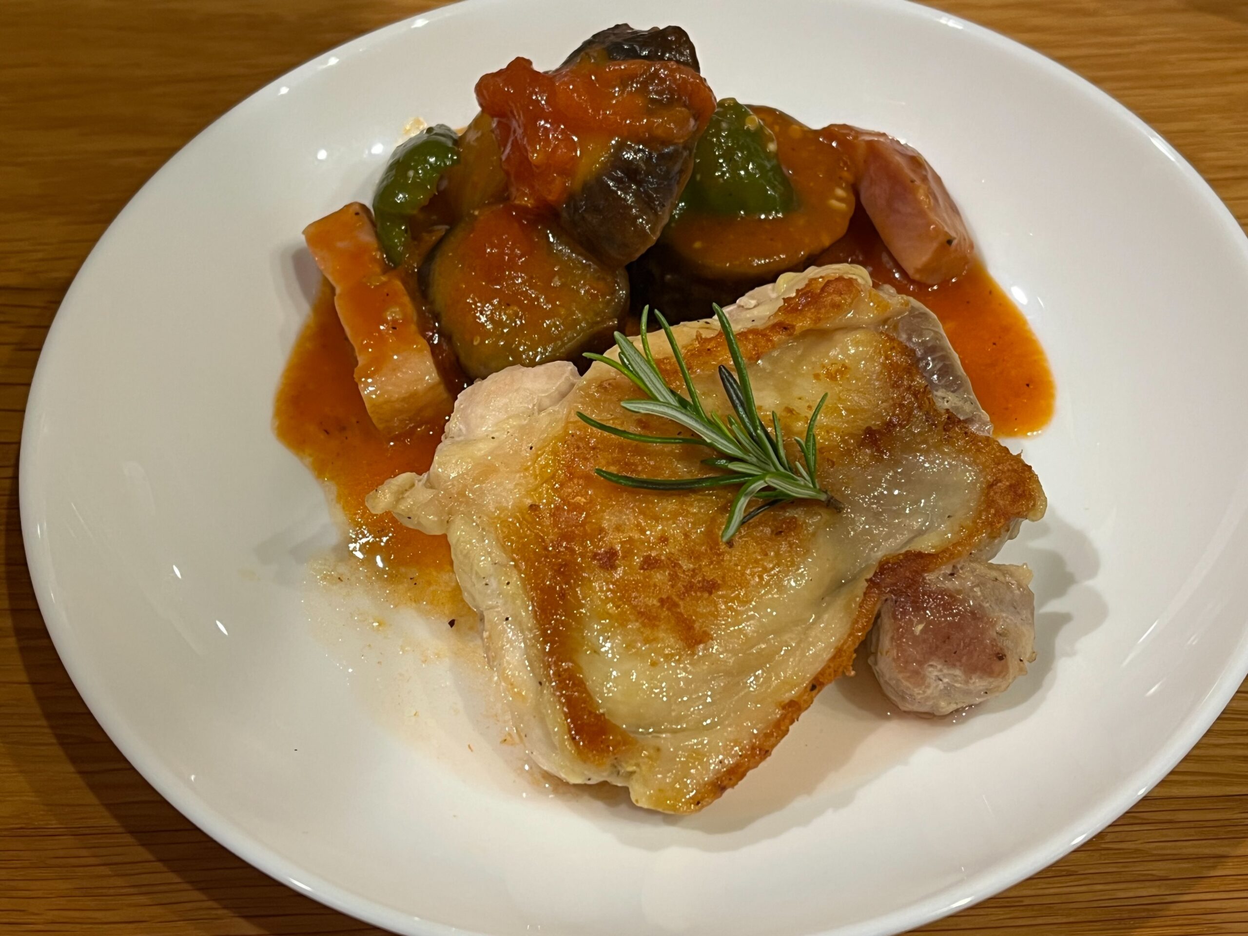 コメント:トマト煮込みにさらっと油を使いました。庭のローズマリーもアクセントになり、美味しくできました♪
