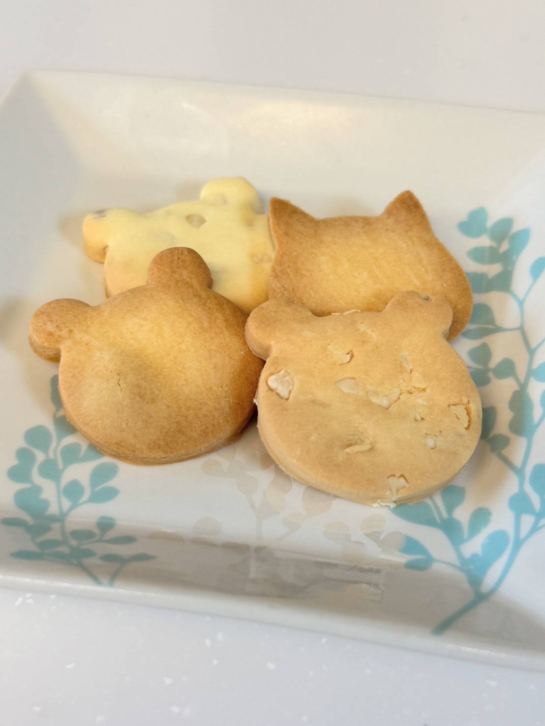 コメント:バターの代わりに油でできるクッキーです。サクッとしていて、あっさりした味わいです。ココアパウダーを混ぜて、アレンジができます。この写真のクッキーは、アーモンドダイスを入れてみました♪
